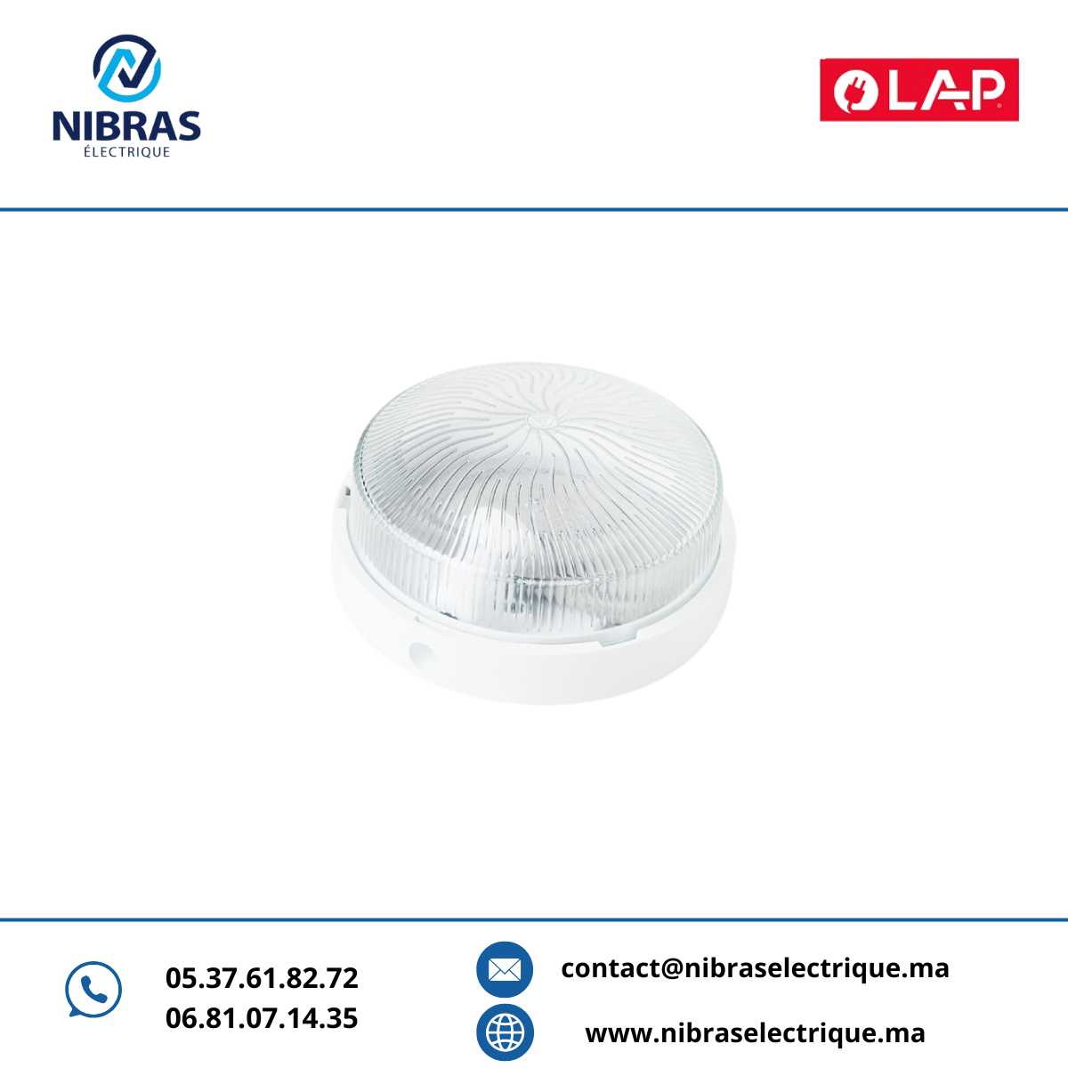 - Type : HUBLOT ROND A DIFFUSEUR EN VERRE BLANC B22